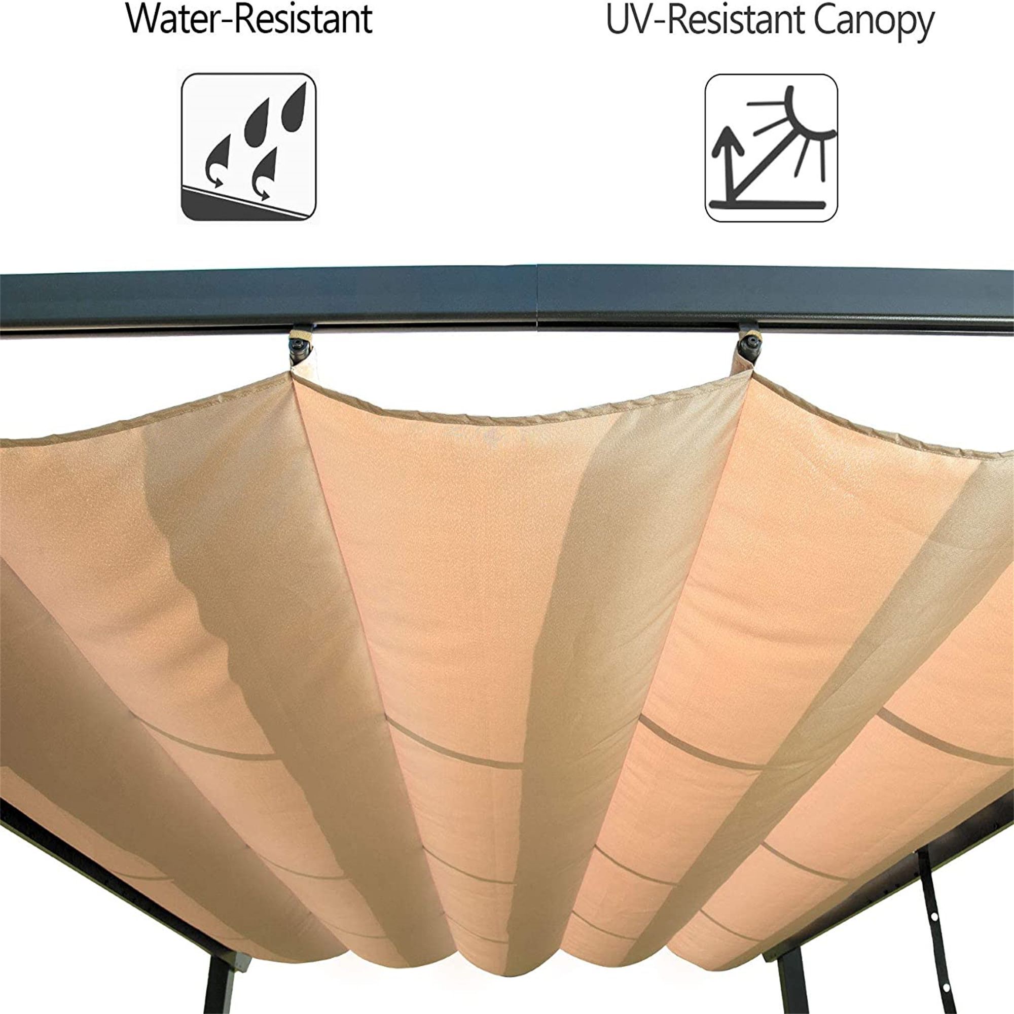 RETRACTABLE CANOPY:Control the perfect balance of shade and sun with a retractable pulley system,Adjust the optimal shade area according to your needs to block sunlight,UV rays,and light rain.