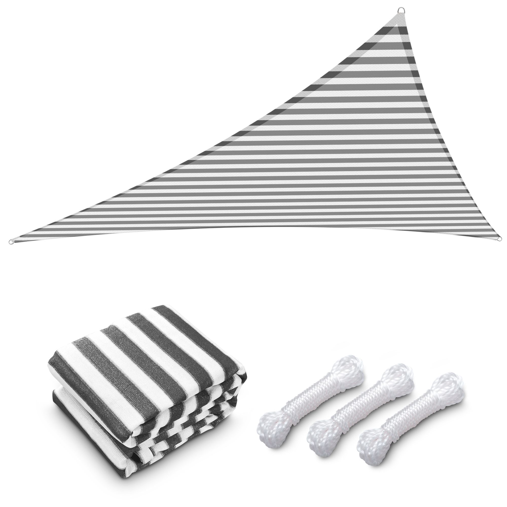 - Durable in Use - Triple stitched seam reinforces the edge to prevent fraying and ripping; Curved triangle shape helps the sail to keep tight; Heavy-duty nylon ropes included; Anti-ager composition added for long time service
