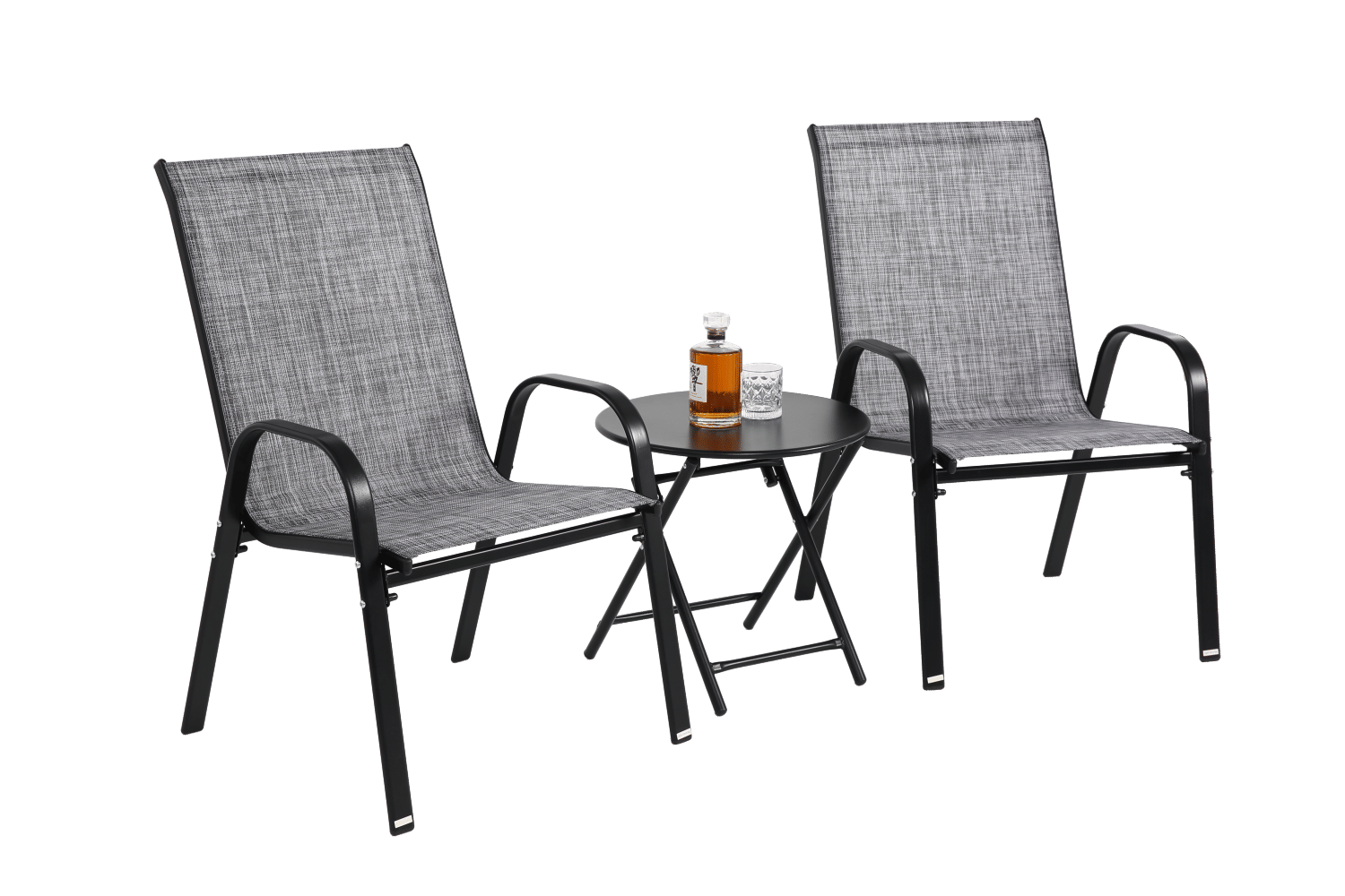 3 Piece Patio set, Outdoor Camping Chairs with Breathable Textilene Fabric-Grey