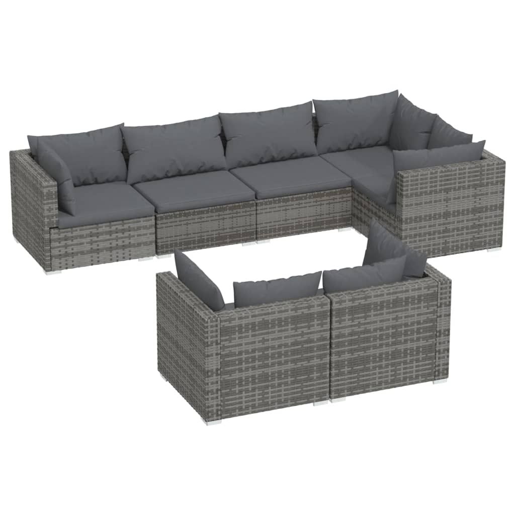 7 Piece Patio Lounge Set with Cushions Gray Poly Rattan