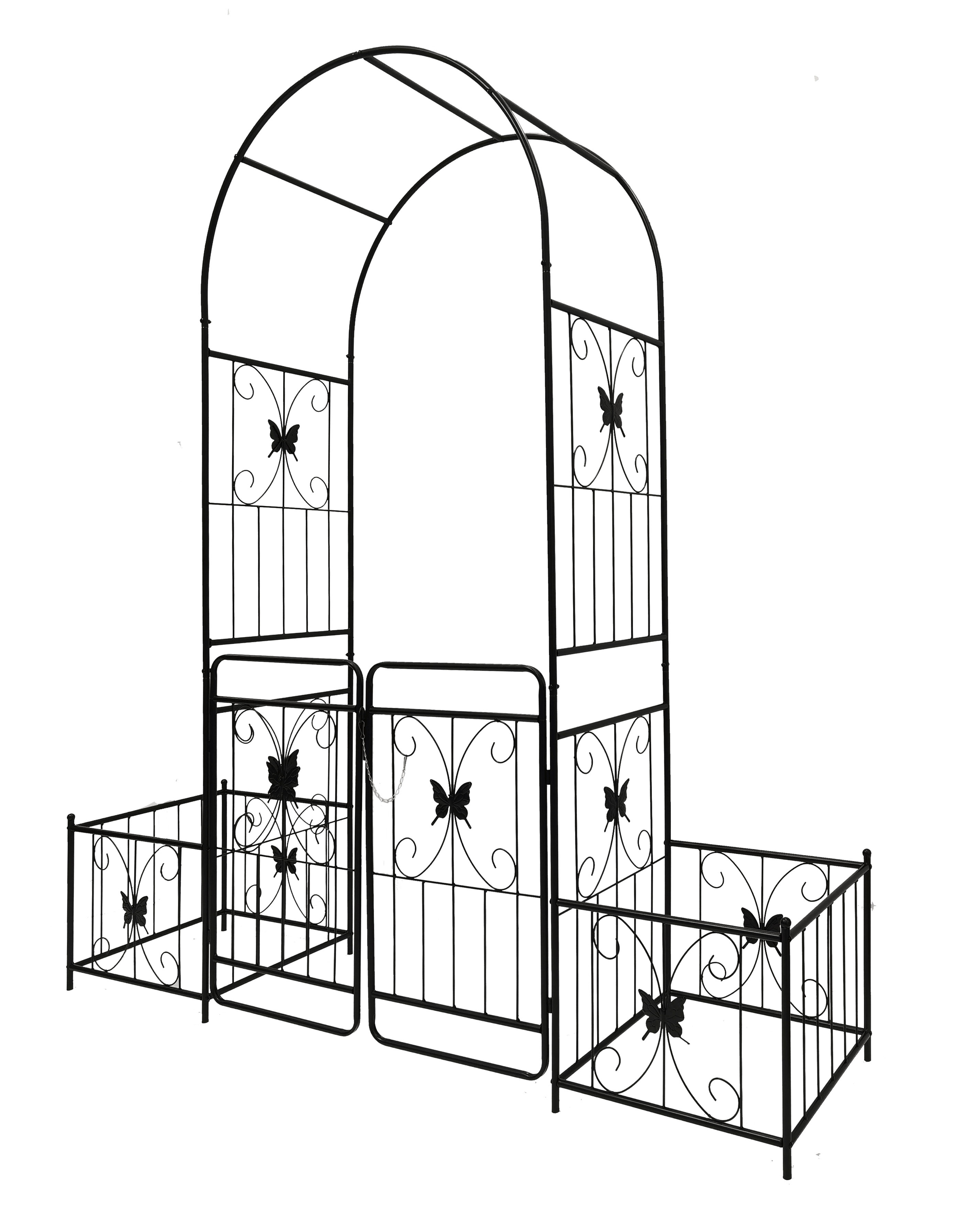 Nice Design: 86.6'' High x 79.5'' Wide. The double gate design of this garden arbor gives a sense of privacy in your garden. With two side planter stands, you can grow flowers directly beside the arch or put flower pots in the stands.