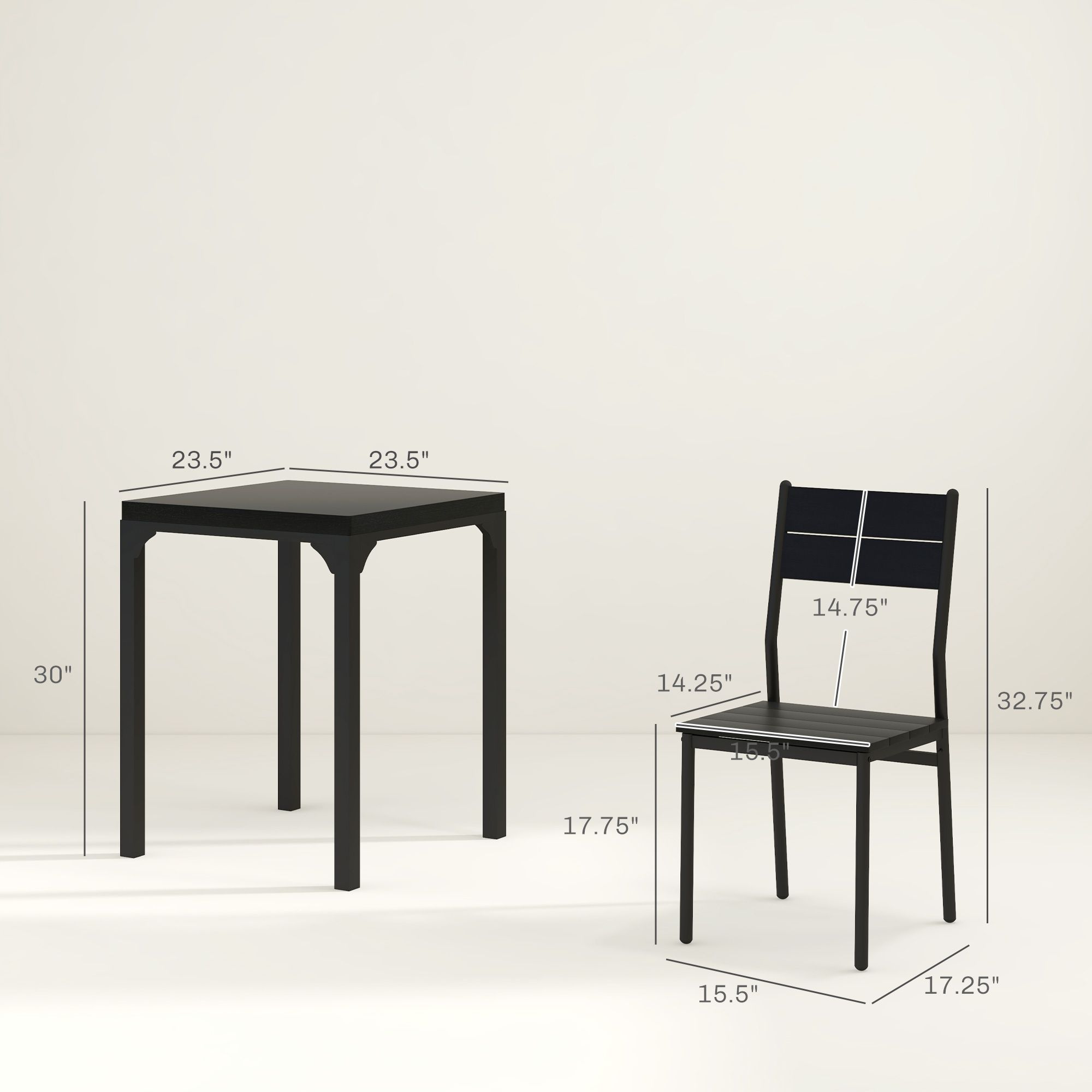 HOMCOM 3 Piece Dining Set, 23.5" Square Table with 2 Chairs, Space Saving for Small Apartment, Black
