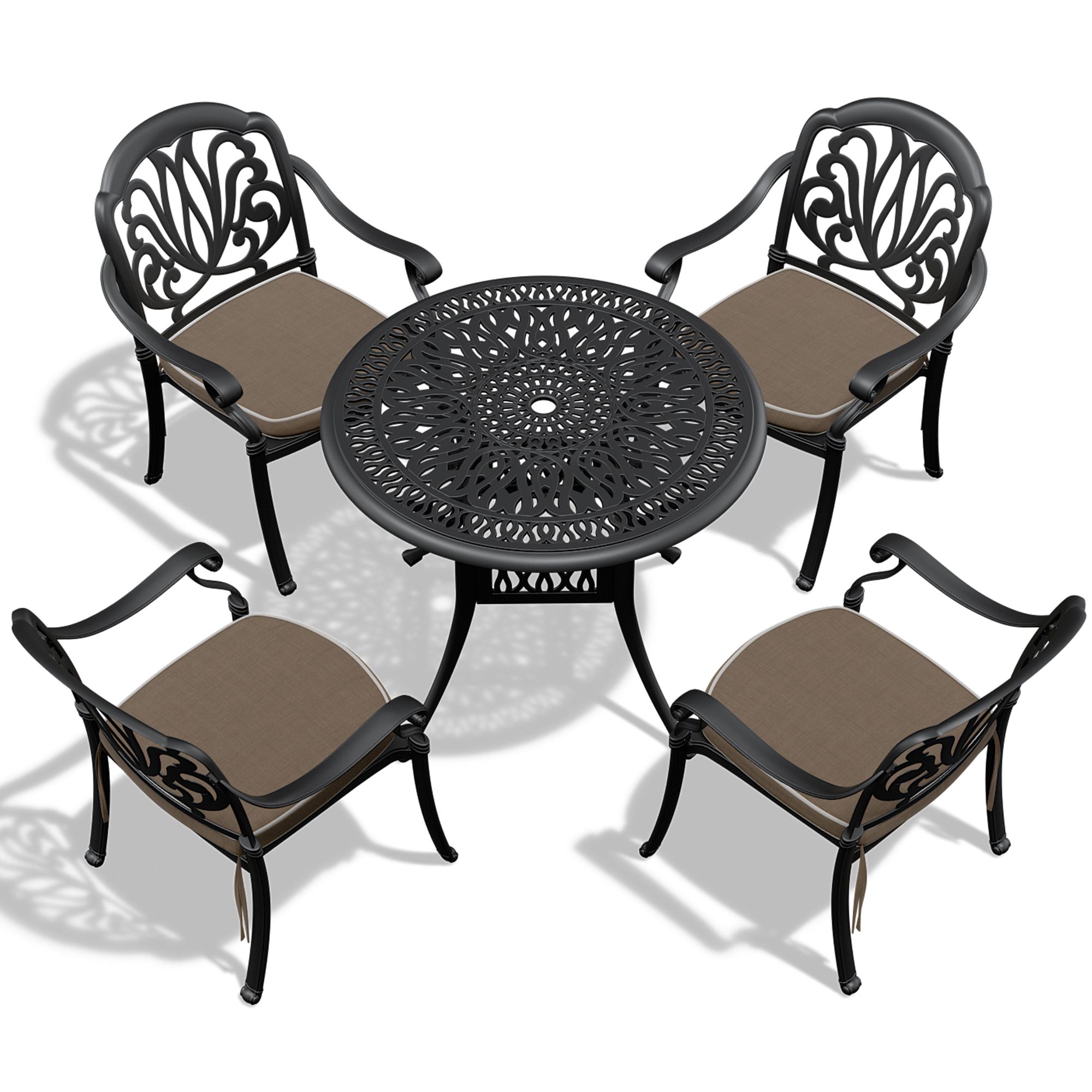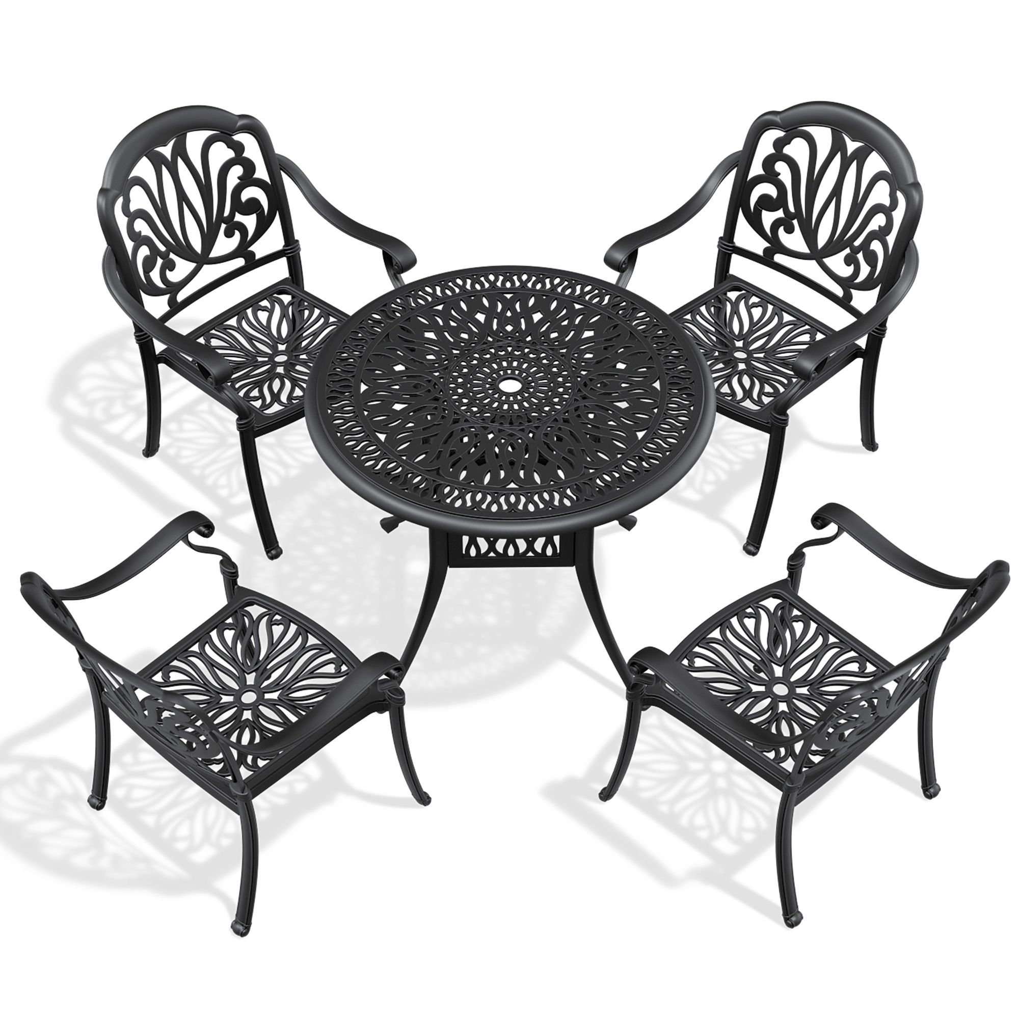 Traditional casting process is used to produce chairs and tables with exquisite carved lines or various patterns such as petals and rectangles, presenting an elegant and beautiful appearance. This design eliminates monotony and adds a touch of charm to your outdoor space, creating a delightful atmosphere for dining and relaxation.