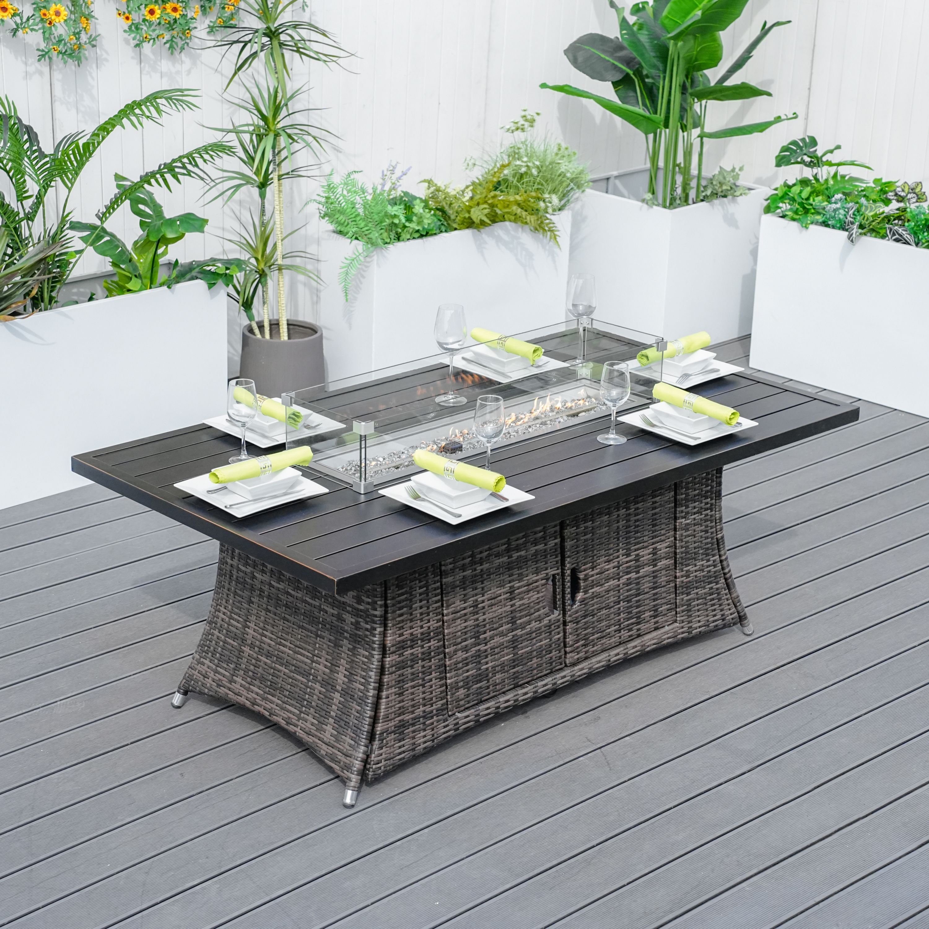 Direct Wicker Patio Fire Pit Dining Set 6-Seat Rectangular Aluminum Table with Rattan Chairs Direct Wicker Patio Fire Pit Dining Set 6-Seat Rectangular Aluminum Table with Rattan Chairs Direct Wicker Patio Fire Pit Dining Set 6-Seat Rectangular Aluminum Table with Rattan Chairs